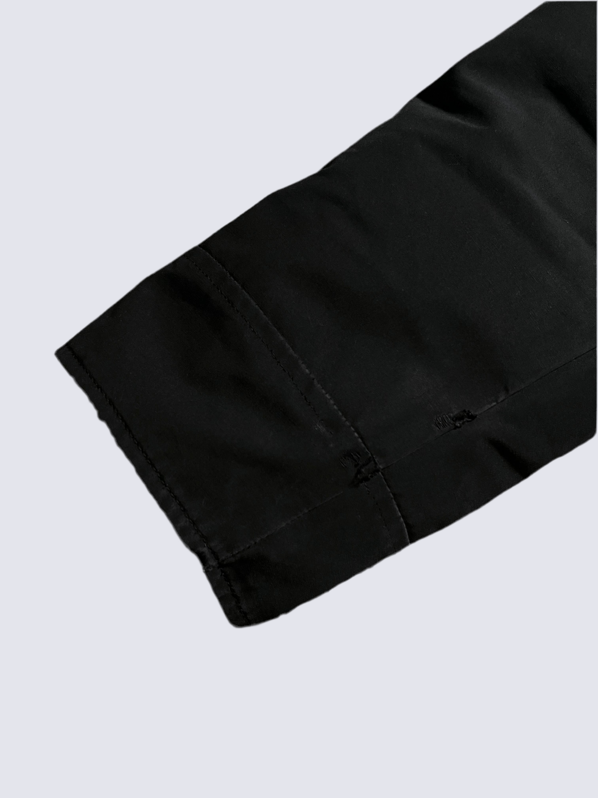 - Good condition; natural wear to material, small pinhole on front and marks on right sleeve. See pictures for reference